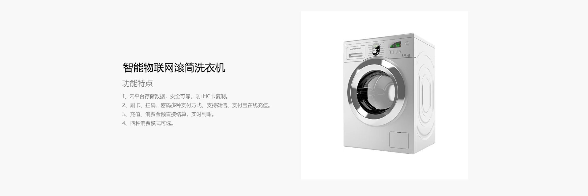 公司专业从事物联网智能水控机系统、物联网智能饮水机系统、物联网智能吹风机系统、物联网智能洗衣机、物联网智能售货机系统的研发、生产和销售。